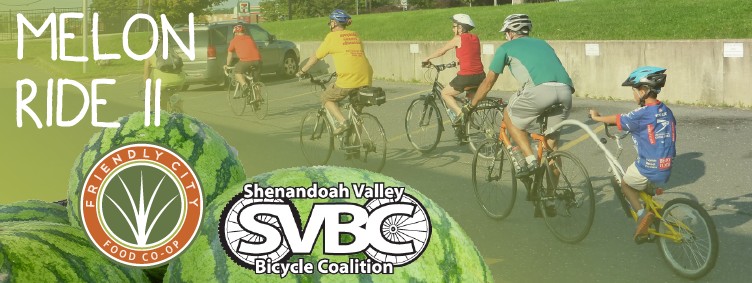 For August 22, the Shenandoah Valley Bicycle Coalition teamed up with our downtown grocery store, the Friendly City Food Co-op for a family friendly casual bike ride around town. Why melons? Well the Friendly City Food Co-op will provide melons for your eating pleasure after the ride.