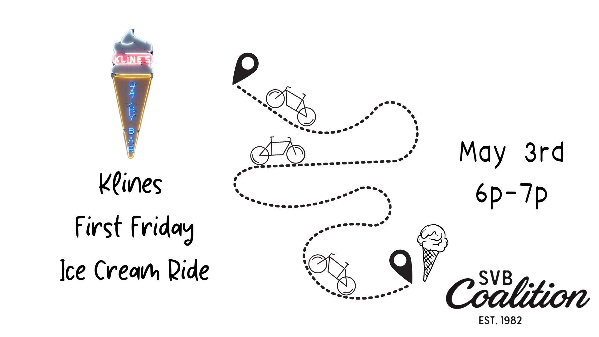 We are kicking off Bike Month with a First Friday Ice Cream Ride to Klines! This will be a casual, around-town bike ride designed for the whole family. Before enjoying the rest of your evening downtown, this will be a mellow and gentle ride through town. All are welcome and encouraged to attend.
